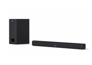 :LED segment display; Packaging Content: Main unit, Subwoofer, Power cord, 2 x Wall Bracket, Remote control incl. battery, Instruction manual, Quickstart Guide