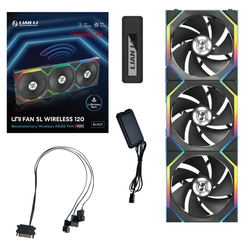Triple Pack Lian Li UNI FAN SL Wireless ARGB PWM Reverse Blade - 120 mm Black + Controller