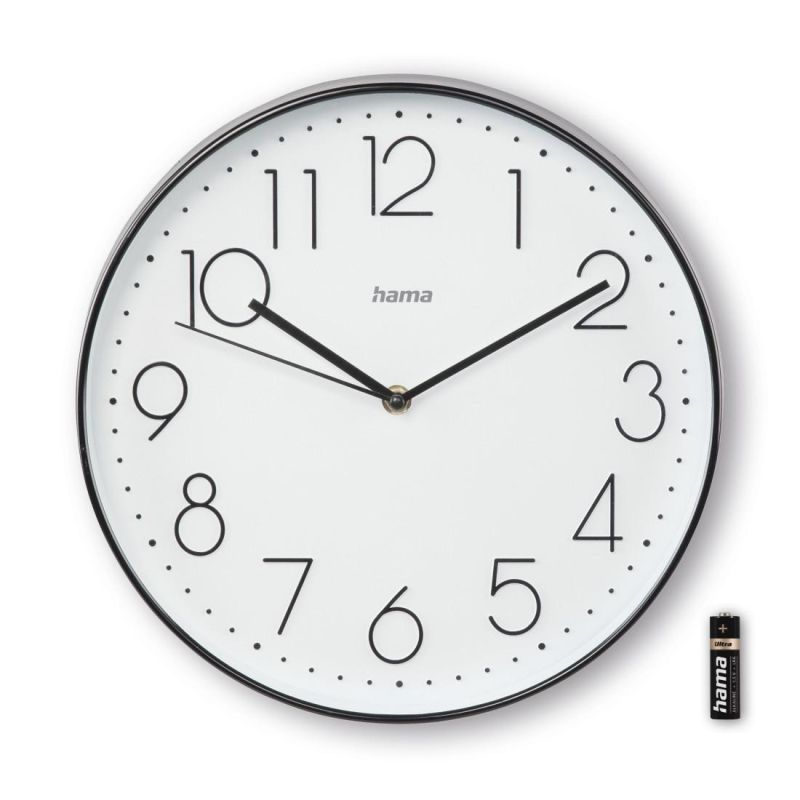 Hama "Corsica" Wall Clock, Ø 30 cm, No Ticking, black/white