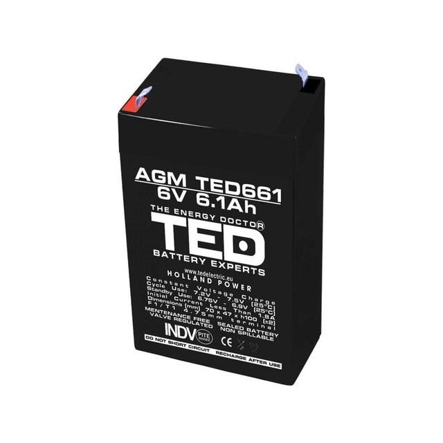 Lead Battery TED ELECTRIC, 6V, 6.1Ah, 70/ 47/ 100 mm, AGM