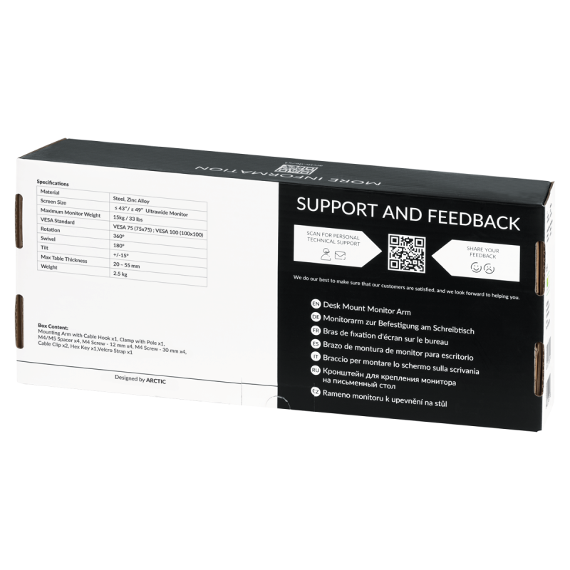 Desk Mount Monitor Arm ARCTIC X1, 13"-49", 15 kg, Black