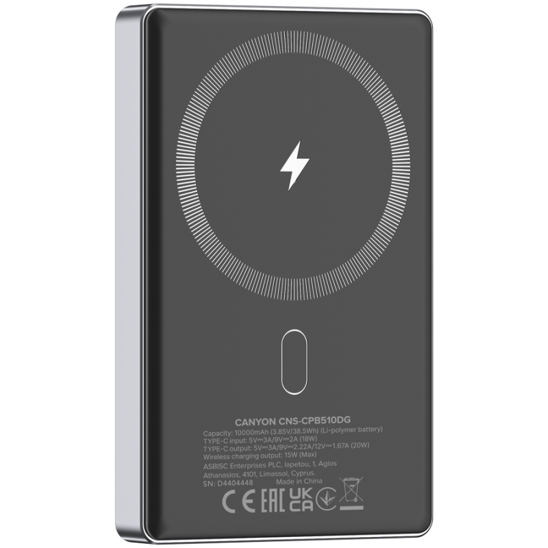 :CANYON power bank OnPower 510 slim Magnetic 10000 mAh PD20W Dark Grey