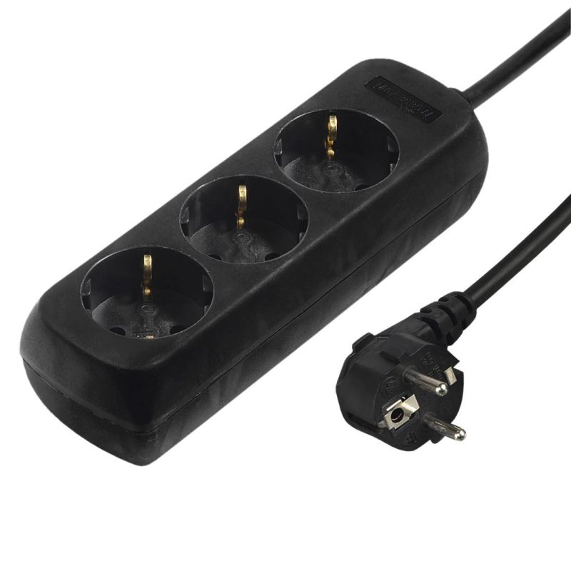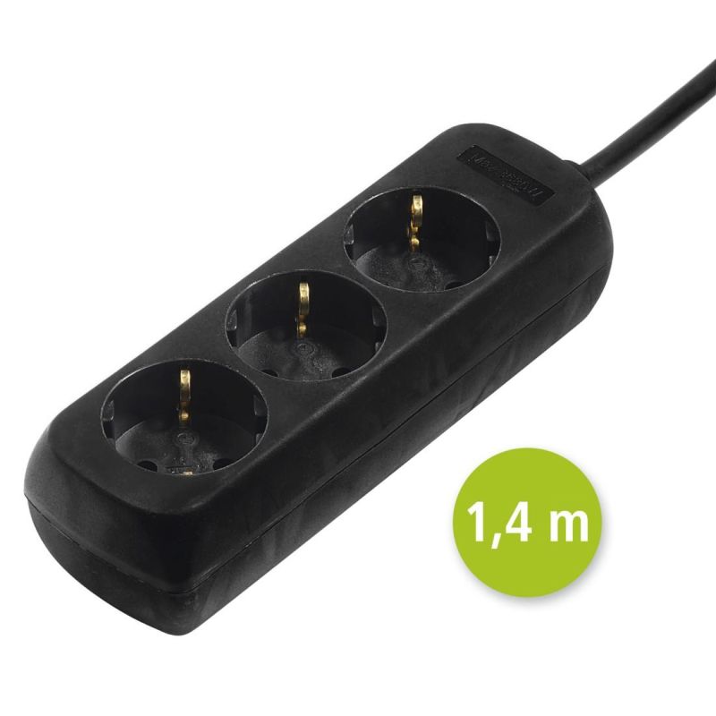 Hama 3-Way Power Strip, with Incr. Touch Protect., 1.4 m, black