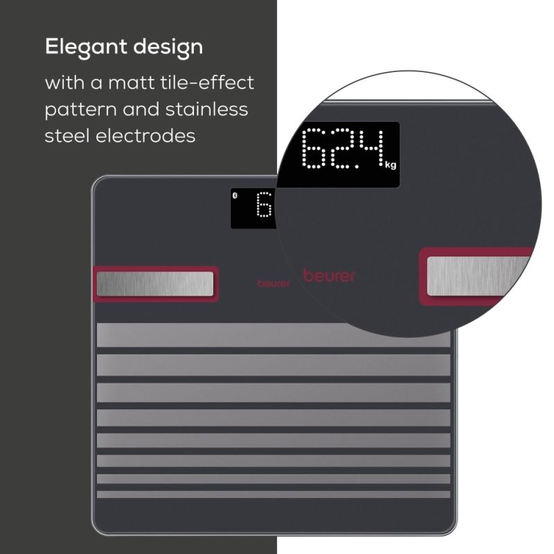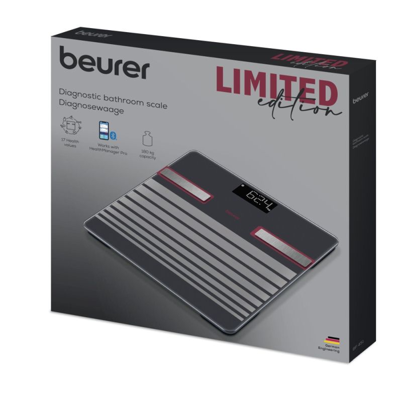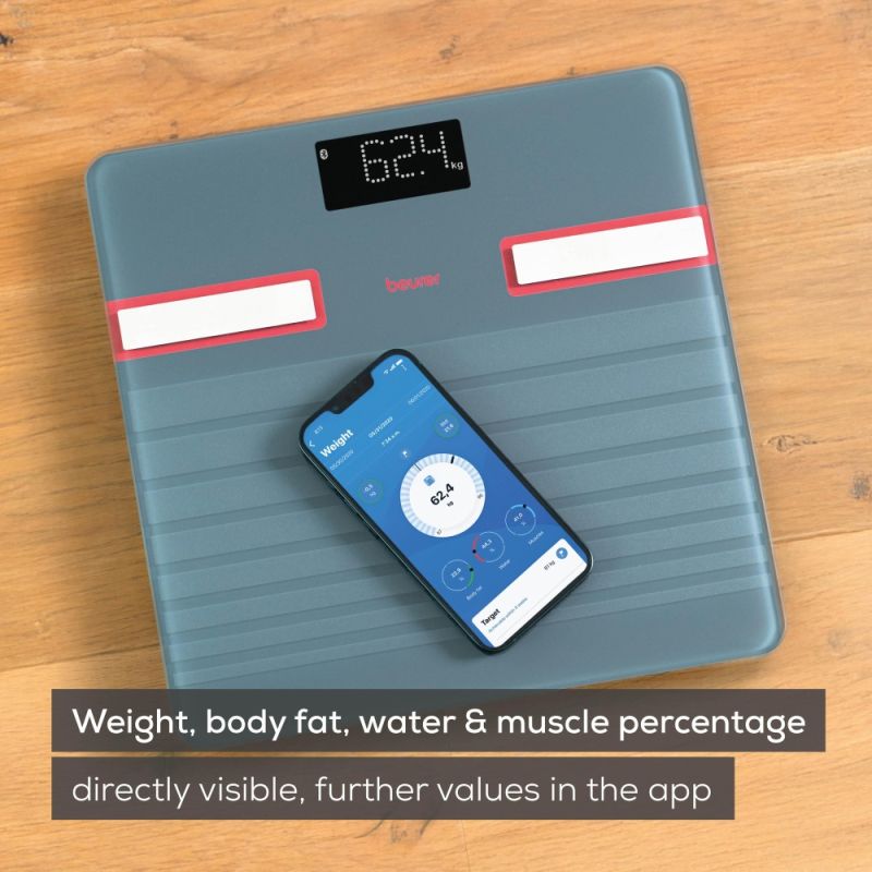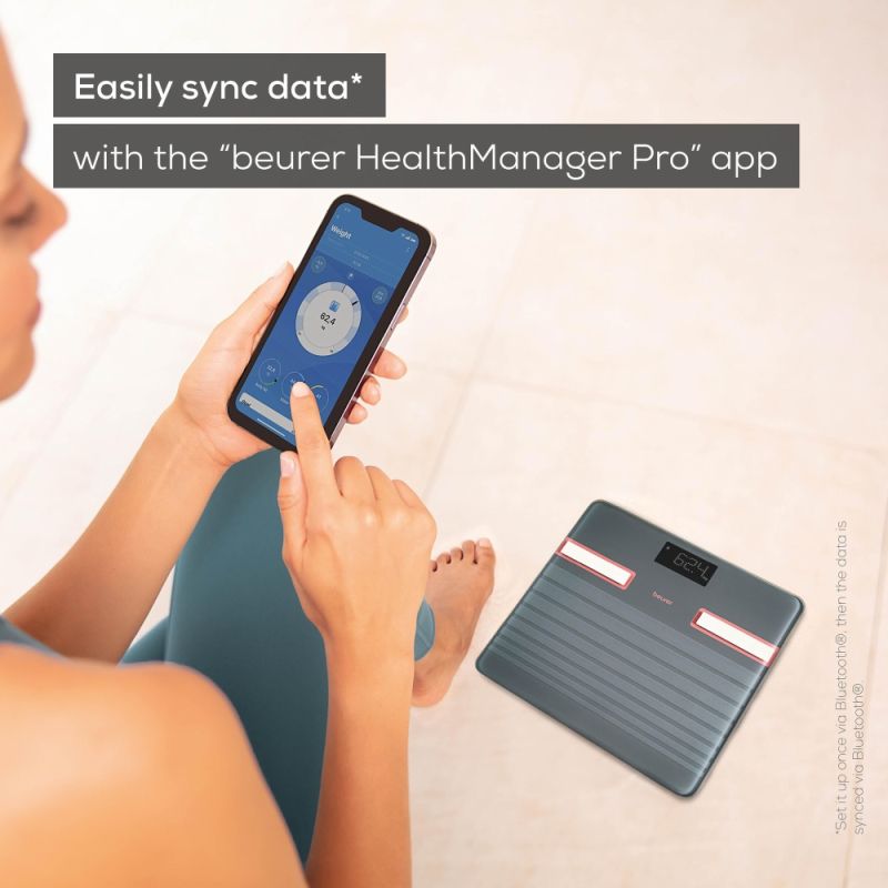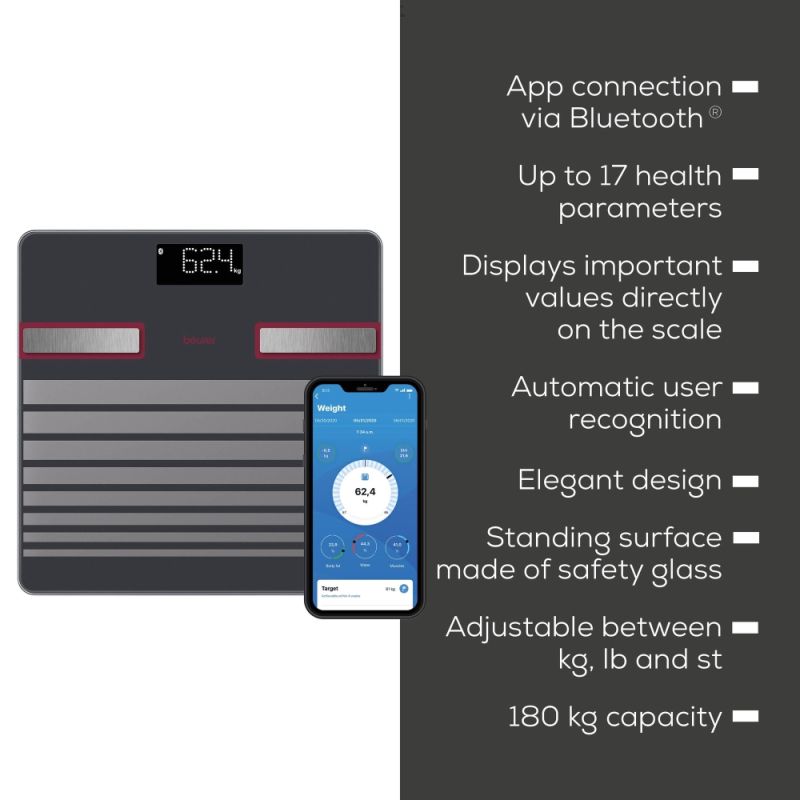 :5 activity levels; 8 user memories with automatic user recognition; 3 x 1.5 V AAA batteries; Including "beurer HealthManager Pro" app for download