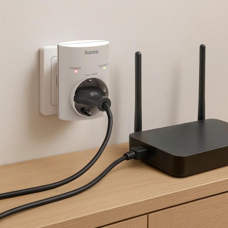 Hama Socket Adapter, Earthed Contact, Overvoltage Protection, Mains Voltage, white