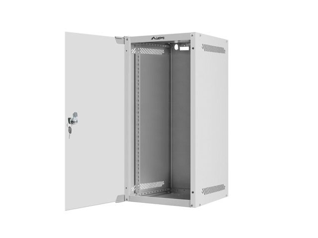 Комуникационен шкаф Lanberg rack cabinet 10" wall-mount 12U/280x310 for self-assembly with glass door grey (flat pack)