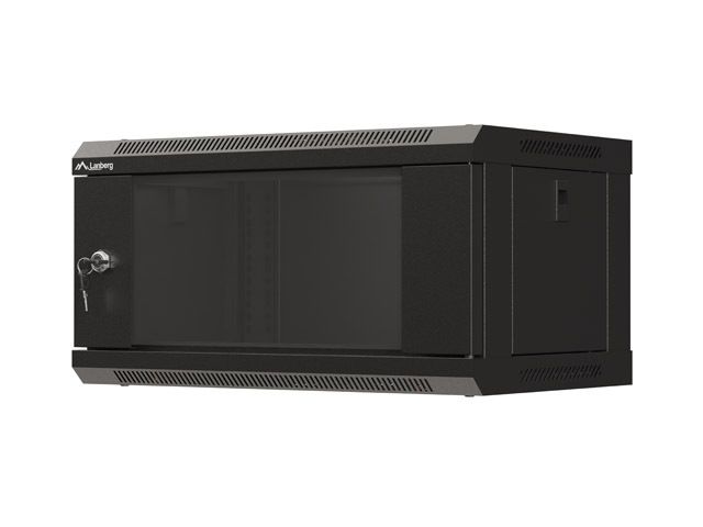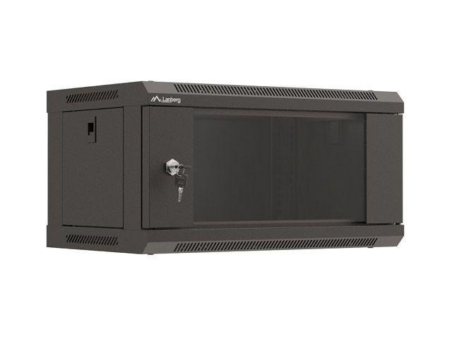 Комуникационен шкаф Lanberg rack cabinet 19" wall-mount 4U/540x350 (flat pack) with glass door black