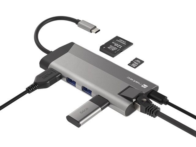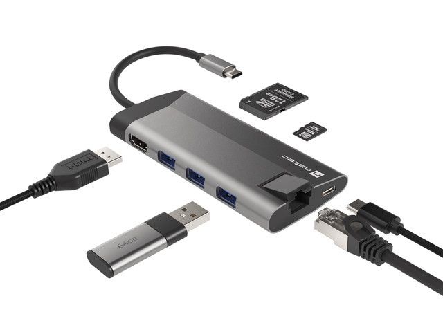 Докинг станция Natec Fowler Plus Multiport Adapter 8 in 1, USB 3.0 HUB, HDMI 4K, USB-C PD, RJ45, SD, Micro