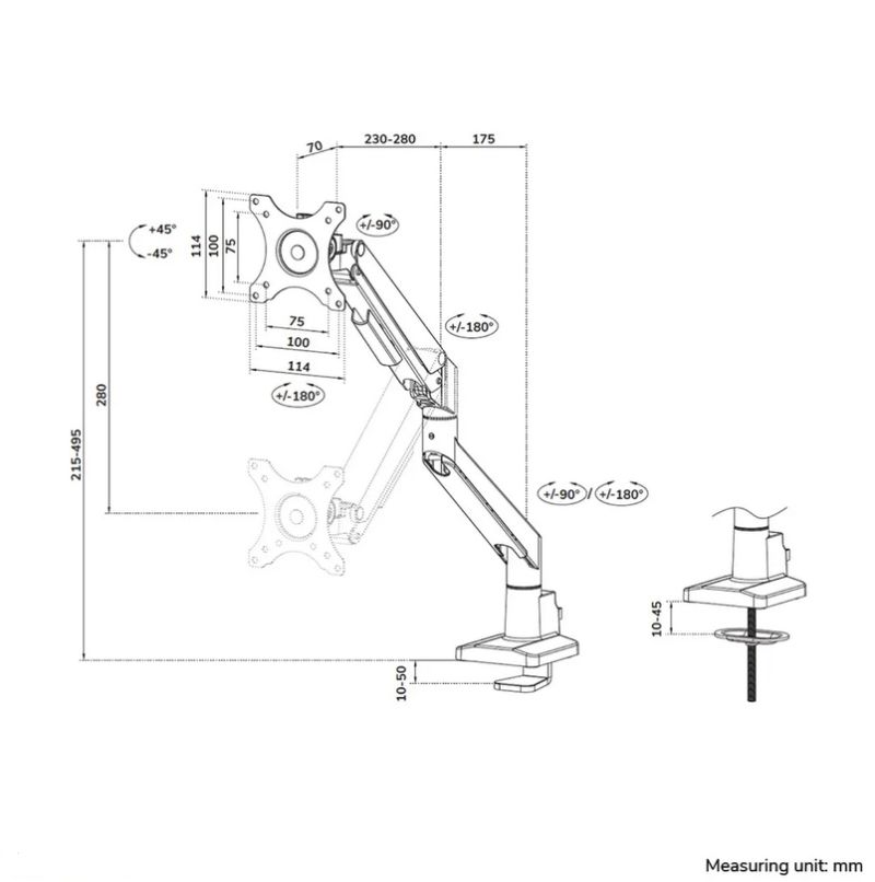 Максимално натоварване, кг:1 - 9 kg (Max. weight curved/ultra-wide - 8 kg)