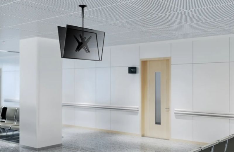 Други:A nifty cable management systems conceals and routes cables from ceiling to screen