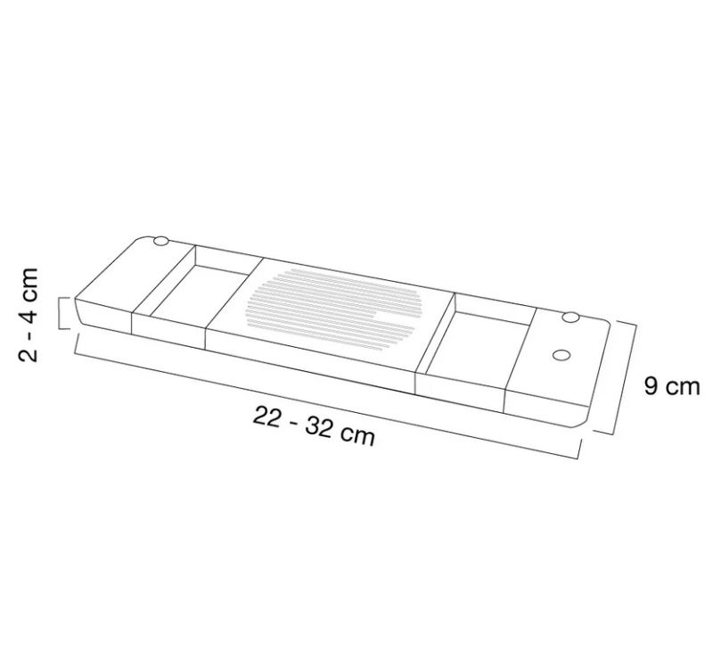 Width: 22 - 32 cm, Depth: 9 cm, Height: 2 - 4 cm