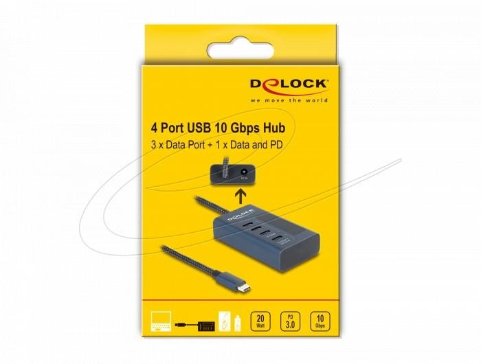 Delock USB Хъб, 4 порта, 10 Gbps, 3 x Data USB-C, 1 x PD 20W