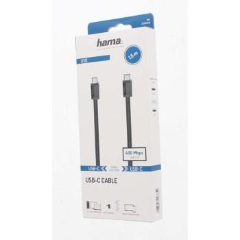 Кабел HAMA USB-C мъжко - USB-C мъжко,1.5 м,черен,3A,60W,480Mb/s
