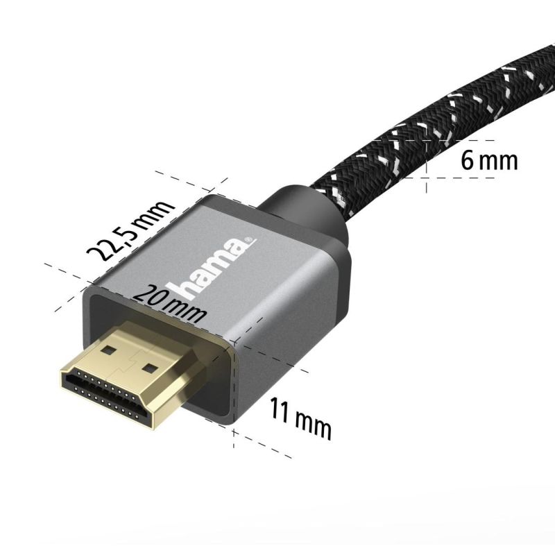Кабел HAMA Ultra HD, HDMI мъжко - HDMI мъжко, 8K, 48GB/s,метал, 2 м, Позл. конектори, Черен