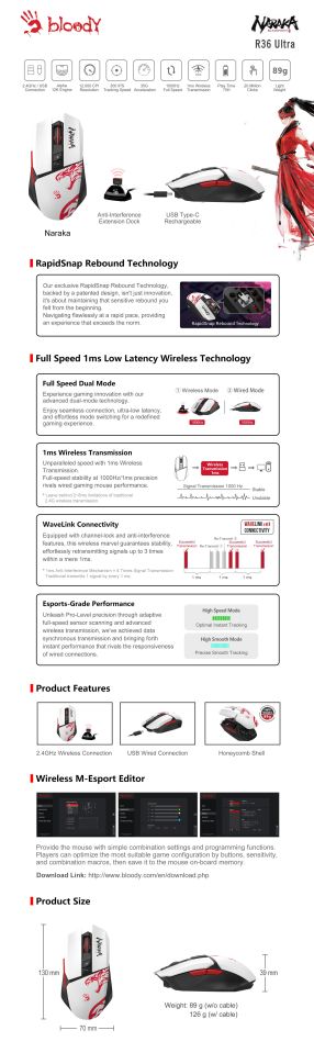 A4tech Bloody R36 Ultra Naraka Геймърска безжична оптична мишка