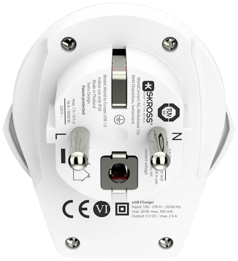 Адаптер SKROSS World to Europe 1500266, USB, Бял