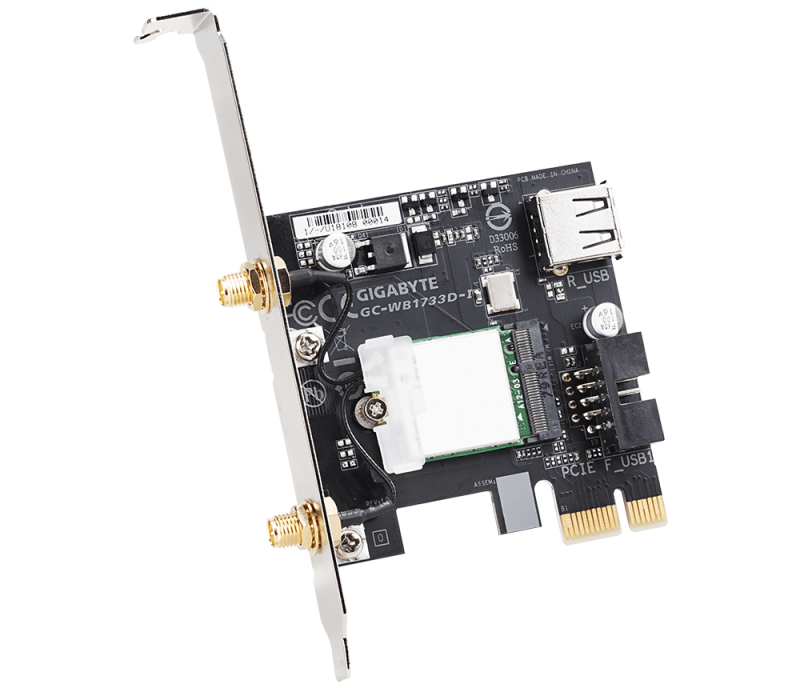 Безжичен PCI Express адаптер Gigabyte GC-WB1733D-I, 2x2 802.11ac 160MHz, Bluetooth 5.0