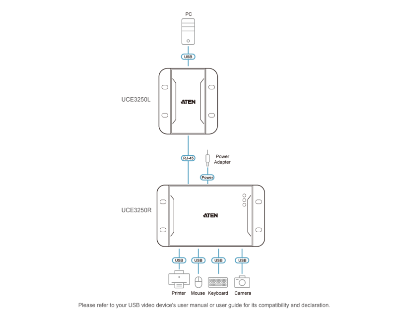 USB Extender ATEN UCE3250, 4 порта, USB 2.0, CAT 5, до 50m