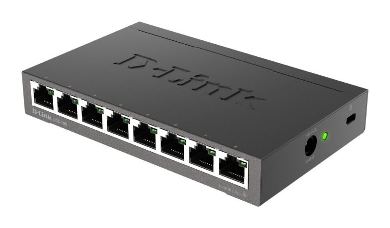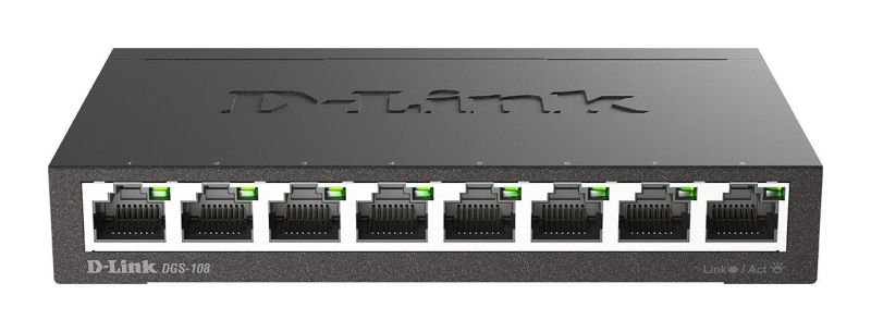 Суич D-Link DGS-108/E, 8 портов, 10/100/1000, Gigabit, метален корпус
