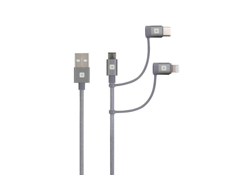 Кабел Skross 3 в 1, USB-A - USB-C/ Lightning/ Micro USB , Метална оплетка, 1.2 м