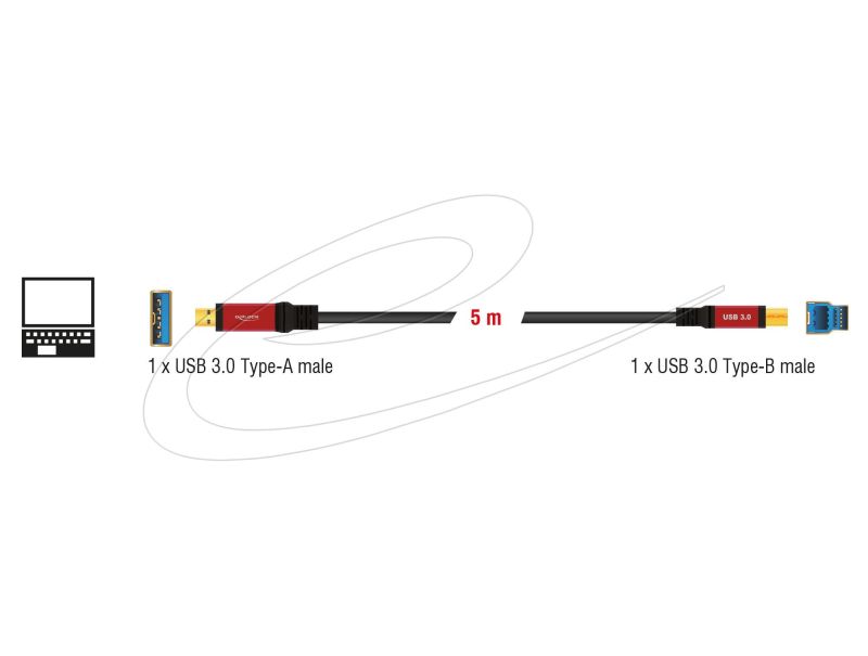 Кабел Delock USB-A 3.0 5Gbps мъжко - USB-B 5Gbps мъжко, 5 м, Premium, Черен