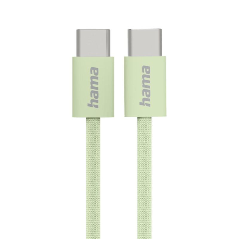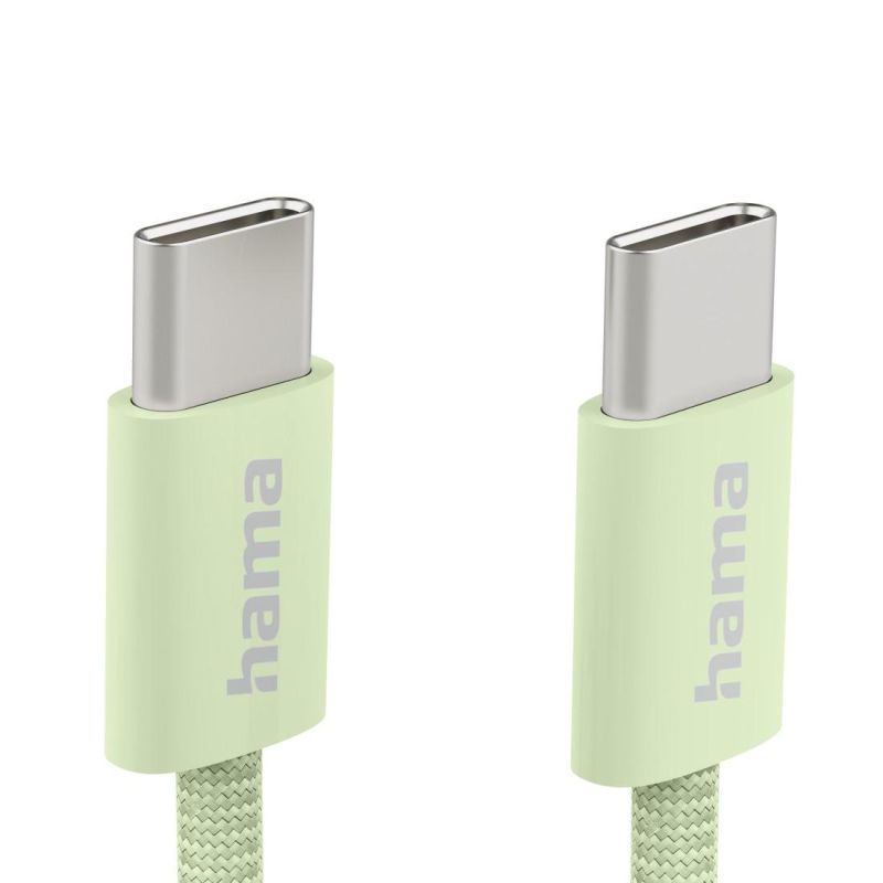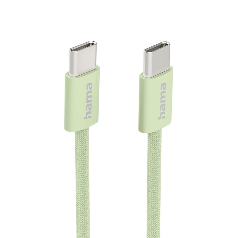 HAMA Кабел за зареждане "Fabric", USB-C - USB-C, 1 m, Nylon, зелен