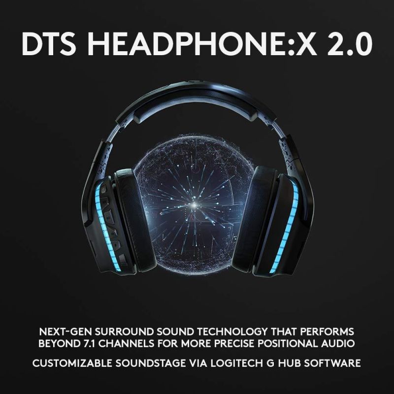 Геймърски слушалки Logitech, G935 7.1 Wireless 7.1 Surround Lightsync, Безжични, Черни
