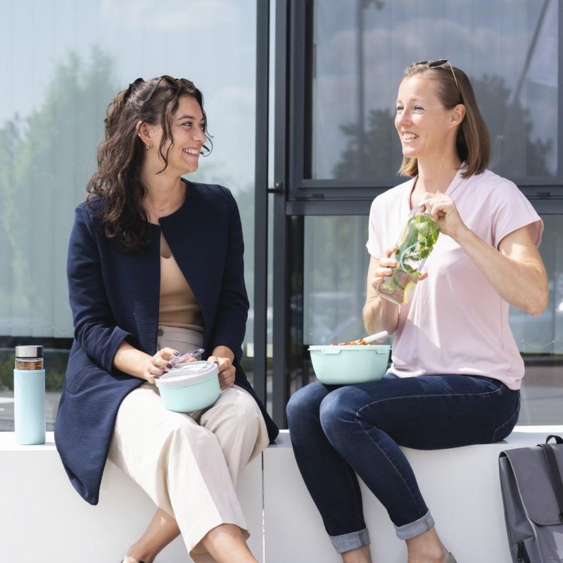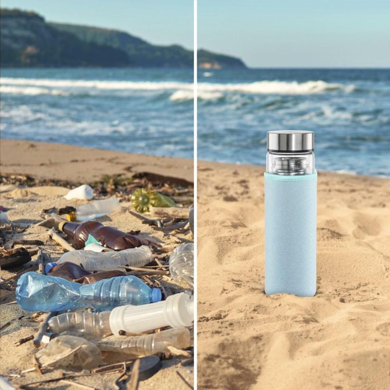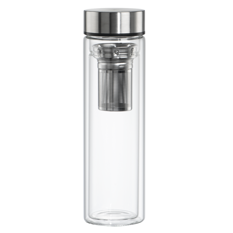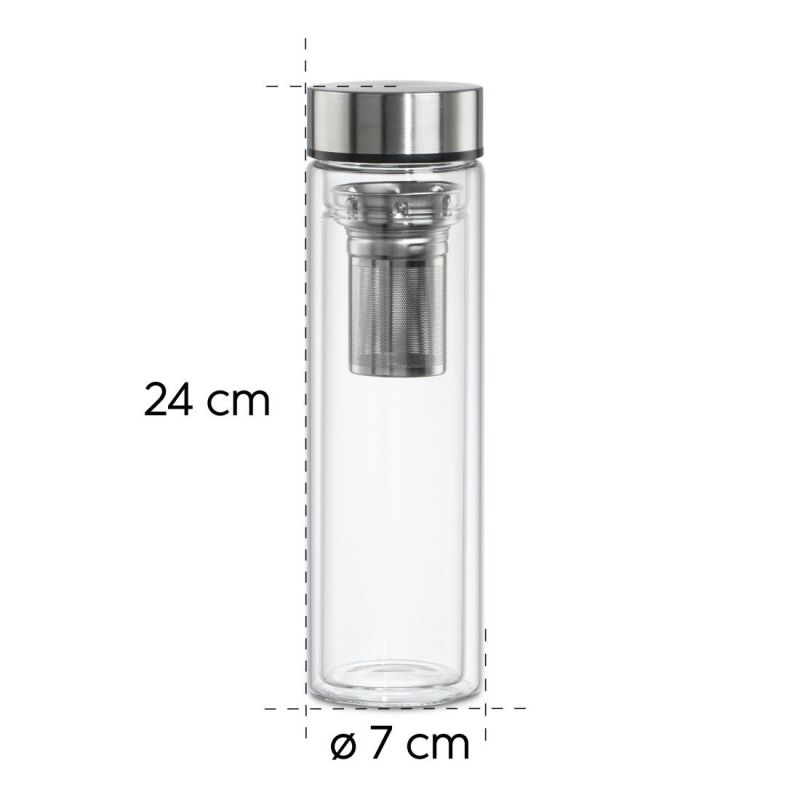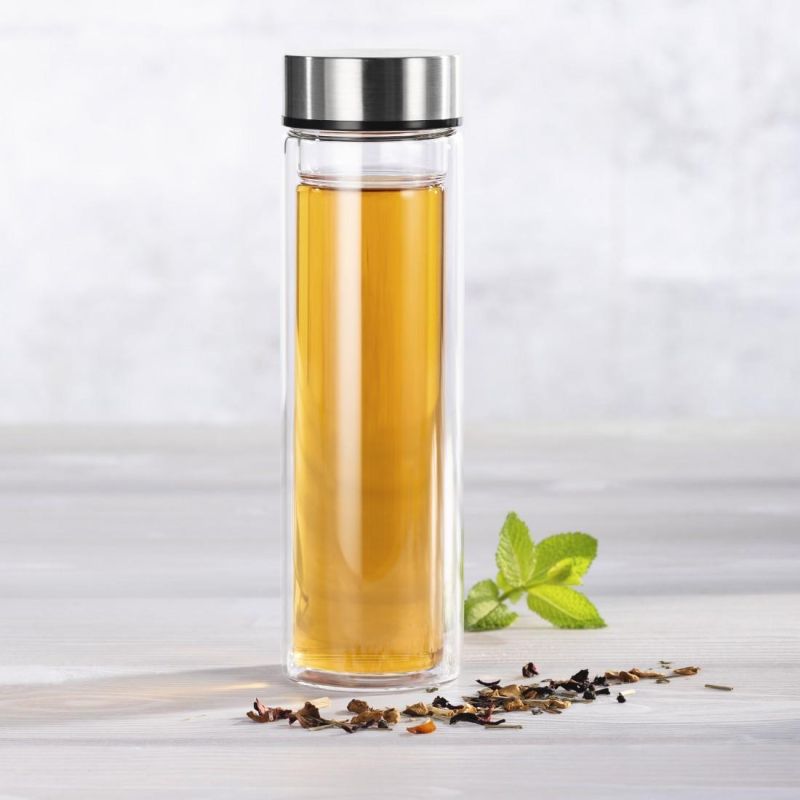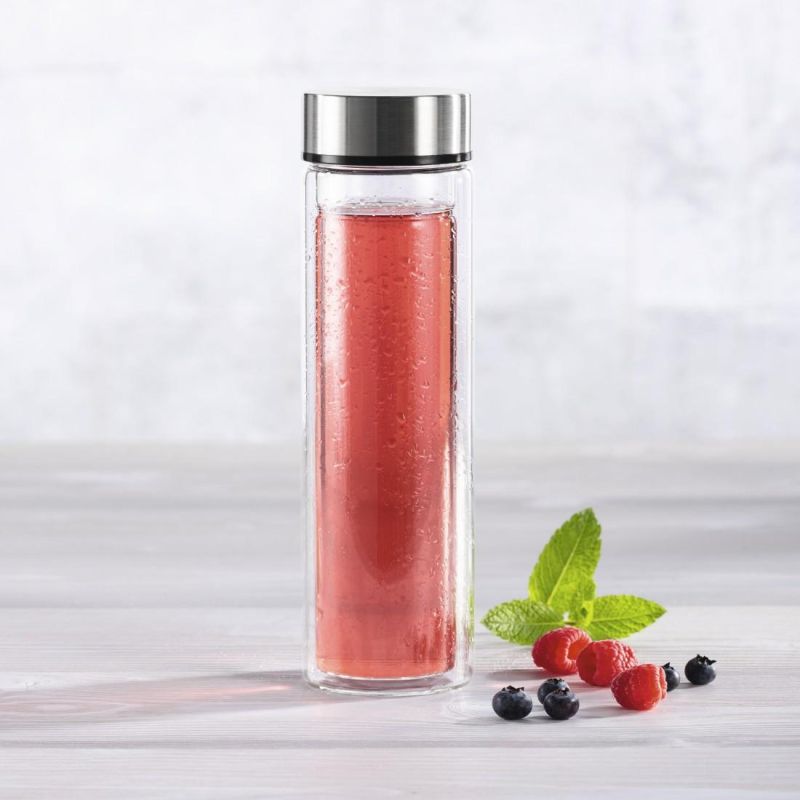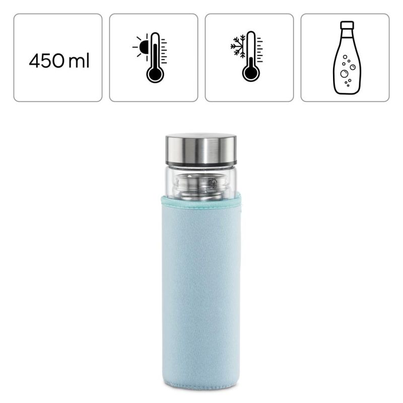 Стъклена бутилка Xavax To Go, 450 мл, Предпазен калъф, Цедка