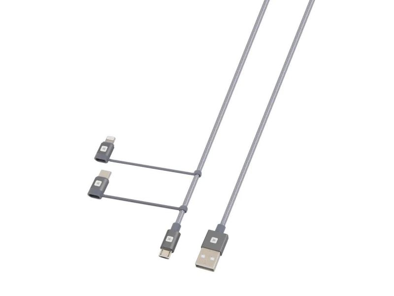Кабел Skross 3 в 1, USB-A - USB-C/ Lightning/ Micro USB , Метална оплетка, 0.3 м