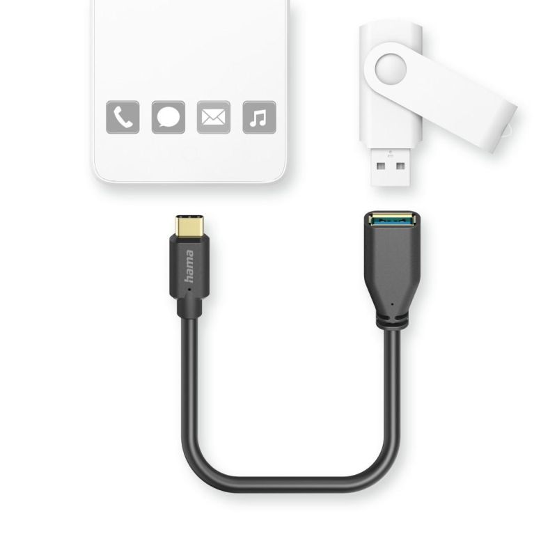 HAMA Адаптер OTG USB-C мъжко - USB-A женско, 0.15m, черен