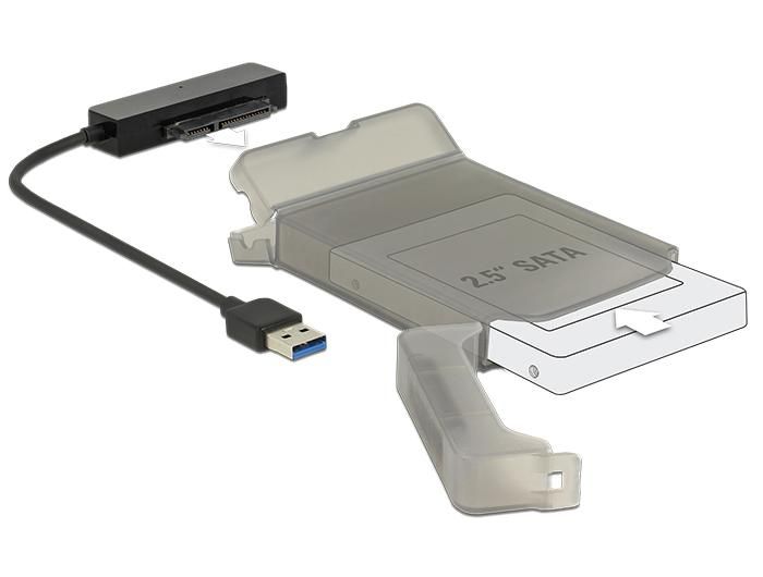 Конвертор Delock, USB 3.0 Type-A мъжко - SATA 6 Gb/s 22 pin, 2.5″ защитен калъф