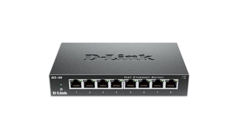 Суич D-Link DES-108/E, 8 портов 10/100 , метален корпус