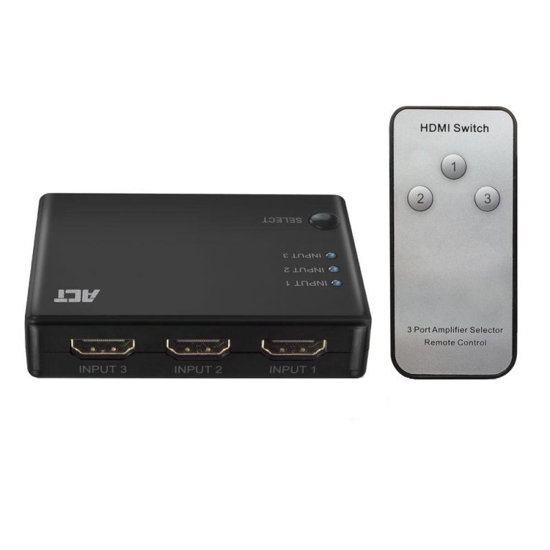 3 портов HDMI суич ACT , 4K@60Hz, USB, Дистанционно, Черен