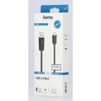 Кабел HAMA USB-C мъжко - USB 2.0 A мъжко, 480Mbit/s,0.75 м, Черен