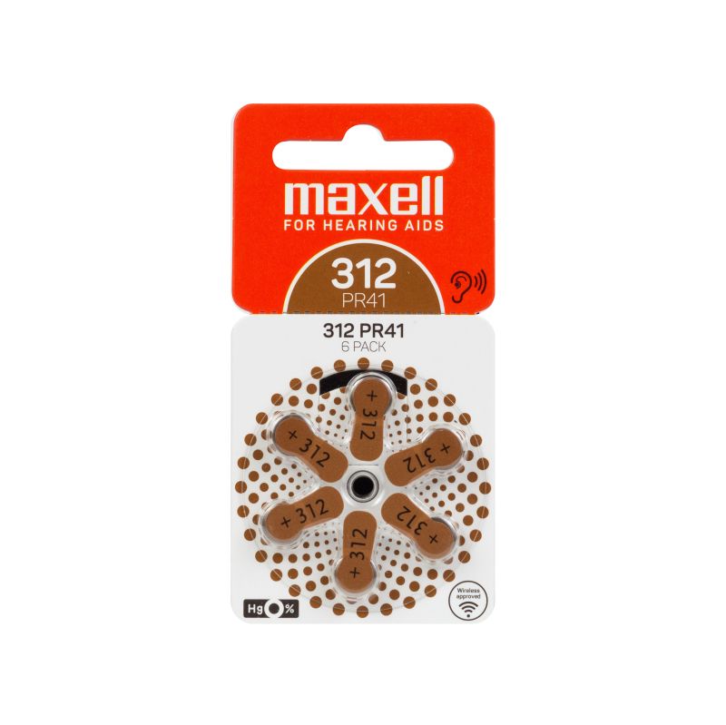 Батерия цинково въздушна MAXELL ZA312 6 бр. бутонни за слухов апарат в блистер