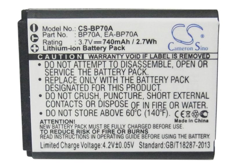Батерия за фотоапарат Samsung BP70A, Li-Ion 3.7V, 740mAh, Cameron Sino