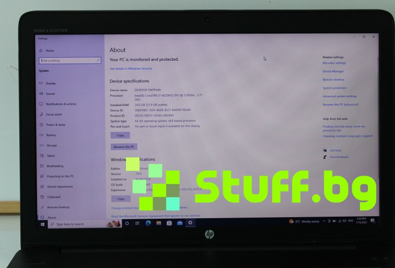 CPU: Intel® Core™ i7-6820HQ Processor 8M Cache, up to 3.60 GHz 4C 8T