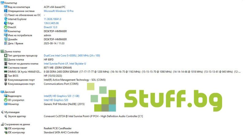 Процесор: Intel Core i5-6300U