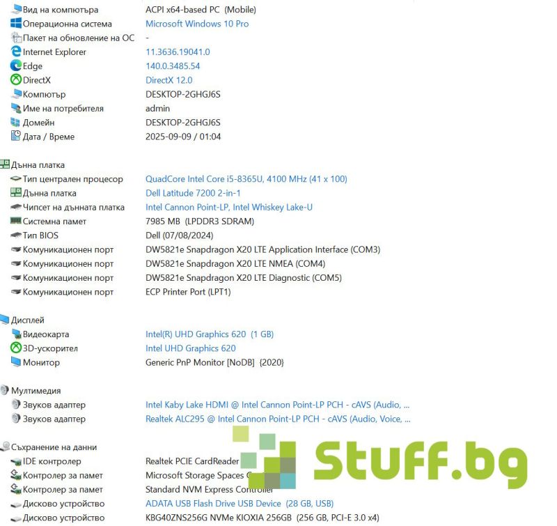 Портове: 2 x USB Type-C with Thunderbolt 3/Power Delivery/DisplayPort, USB Type-A 3.1 Gen 1 with PowerShare, 1 x Combo Audio jack, 1 x microSD Card slot, 1 x Nano SIM card reader