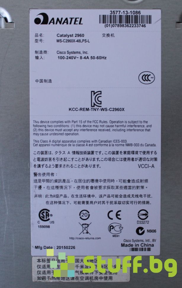 Cisco Catalyst 2960X серия 48 порта LAN Base подреждаем комутатор осигурява Power over Ethernet Plus (PoE+), който поддържа до 370W PoE бюджет за 12 порта с 30W на порт, или 24 порта с 15.4W на порт, или 48 порта със 7.4W на порт.