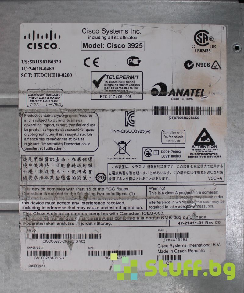 Cisco CISCO3925/K9 е високопроизводителен рутер от корпоративен клас, проектиран да отговори на взискателните изисквания на съвременните мрежи. Проектиран от Cisco, лидер в мрежовите технологии, този рутер предлага разширени възможности за фирми, които искат да подобрят своята мрежова инфраструктура. CISCO3925/K9 осигурява стабилна свързаност, безпроблемен трансфер на данни и цялостни функции за сигурност, за да гарантира надеждни и ефективни мрежови операции. Със своя гъвкав дизайн и поддръжка за различни мрежови протоколи, този рутер на Cisco е идеален за организации, които искат да оптимизират мрежовата си производителност и да поддържат технически потребители в различни среди.