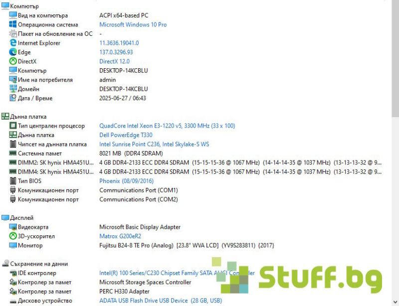 Друго: Intel C236 chipset; Broadcom 5720 network controller;