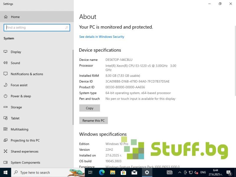 Процесор: Intel Xeon E3-1200 v5 3.3Ghz