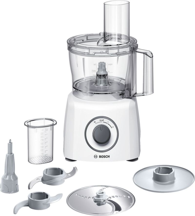 Кухненски робот Bosch MCM3100W, Kitchen machine, MultiTalent 3, 800 W, BPA, plastic bowl 2.3 l , Double-sided stainless steel disc for cutting and shredding, Dough attachment, white