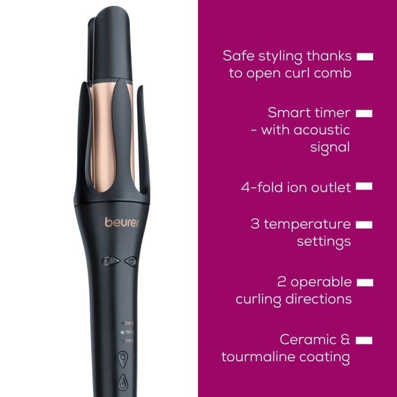 Маша Beurer HT 75 Automatic Hair Curler, 4-way ion outlet, 3 temperature settings: 170, 190, 210°C, Ceramic and tourmaline-coated, Smart timer