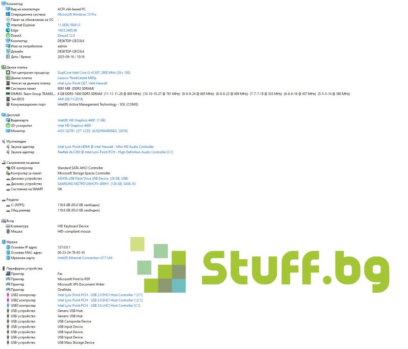 Процесор: Intel Core i3-4130T 2.90 GHz