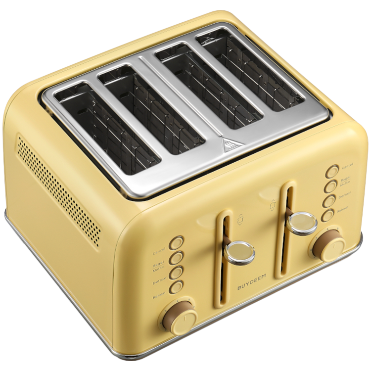 One turn and one press, saves time and effort. LED indicator buttons, function mode at a glance. Kickstart a day with perfect breads from BUYDEEM, retro 4-slice metal toaster which is featured extra-wide slots toast different bagels and muffins. Just enjoy warm bread, bagel or use it to create delicious sandwich.