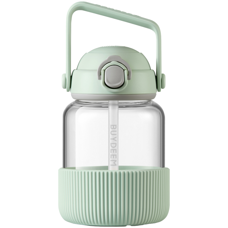 BUYDEEM Pop-Up Straw Glass Bottle 800 ml, model DG78, color Cozy Greenish
