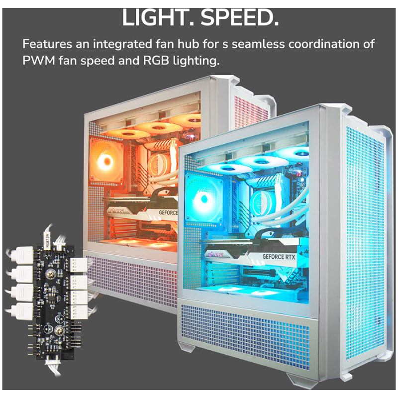 Шаси характеристики:Window <br/>Supports Liquid Cooling System <br/>RGB Fans