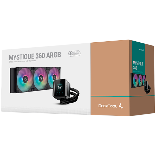 DeepCool MYSTIQUE 360 ARGB, 360mm CPU Liquid Cooler, 2.8" LCD screen, 3x120mm ARGB PWM Fans, Addressable RGB LED, Fluid Dynamic Bearing, Black, Intel LGA1851/1700/1200/1151/1150/1155, AMD AM5/AM4, R-LX750-BKADSNC-G-1